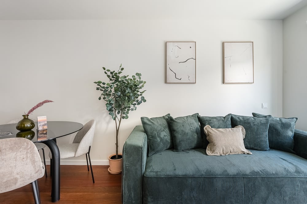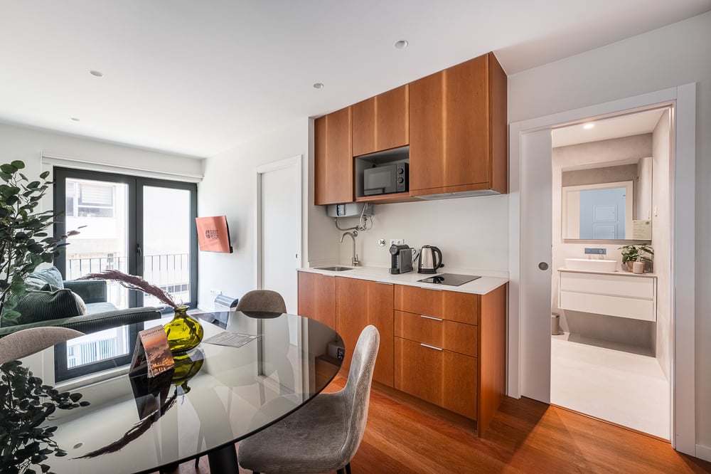 Welcome to my home! This lovely apartment with 45m2 is close to various top attractions, stores, supermarkets, and plenty of restaurants in the surrounding areas with multiple gastronomy options. The living room features a comfortable sofa where you can relax, a wide-screen TV to watch all your favourite shows and a dining table. The area has a lot of natural sunlight that brightens up the space, making it even more inviting. This space also has a kitchenette fully equipped with essential cookware and cutlery that you will need to whip up a delicious meal, including an electric hob, microwave, and coffee machine, among other utilities for your use. The bedroom is a pleasant room with a double bed and a wardrobe and comes with complimentary hotel-quality linens to ensure maximum comfort. Lastly, the bathroom has all the amenities you will need to freshen up, including fresh towels and toiletries for your convenience. The space is always professionally cleaned for your comfort. It is located on the 2nd Floor without an elevator.
