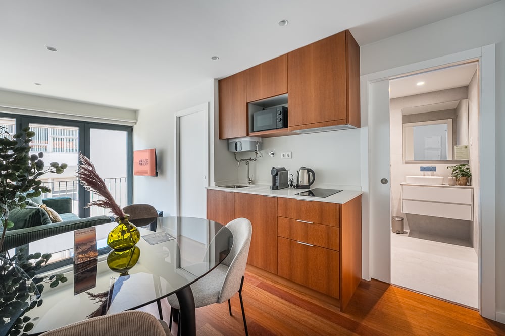 Welcome to my apartment! This charming 45m2, 1-bedroom apartment in Porto is the perfect romantic retreat for couples. The property is located on the 3rd floor and accessible by stairs. Designed with an open layout, the living room features a comfortable sofa, a wide-screen TV to watch all your favourite shows and a dining table. The highlight of this property is the balcony that is shared by both the living room and bedroom, complete with a table and chairs where you can enjoy a glass of wine or a morning coffee with your loved one. The kitchenette is fully equipped with essential cookware and cutleries that you'll need to cook delicious meals, such as a stove, an oven and a microwave. The bedroom has a queen bed with complimentary hotel-quality linens for maximum comfort and storage space for your belongings. The bathroom contains all the necessary amenities, including clean towels and complimentary toiletries. The apartment is always professionally cleaned for your comfort. Daily Housekeeping is available from 12:00 to 17:00. Enjoy your stay!