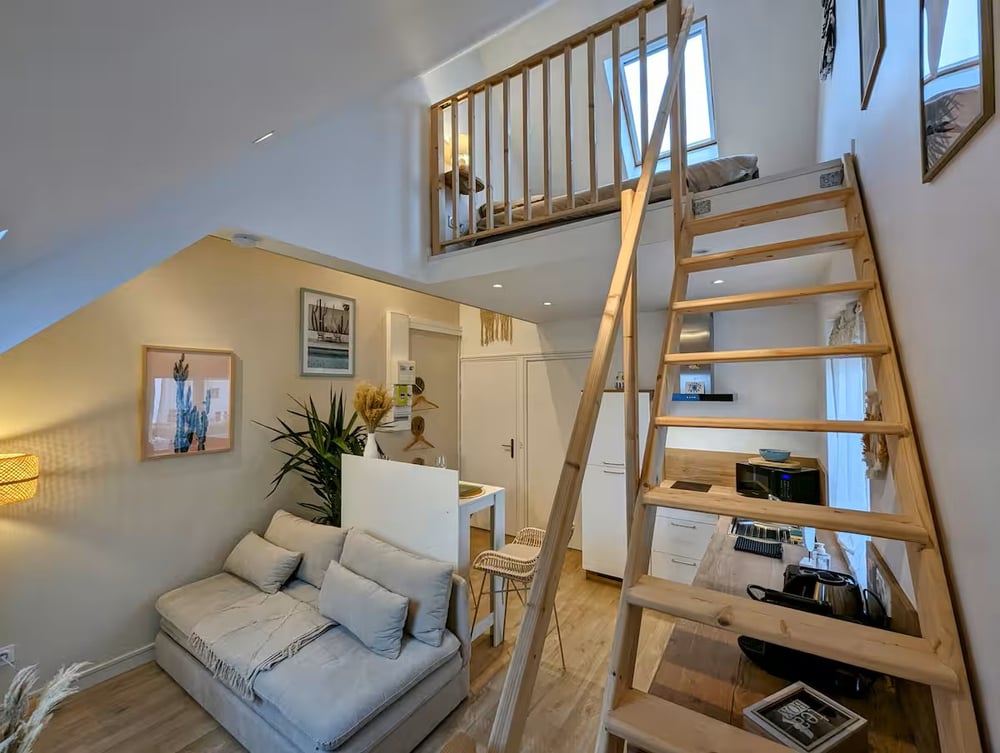 Welcome to "Ibiza," a completely renovated apartment where comfort and charm meet. Located on the 2nd floor of a small, quiet building, this bright and welcoming apartment offers an ideal setting for relaxation. Between the city center and the Saint-Brieuc hospital, you're just steps from shops and two minutes from the city's main attractions. The space is optimized for your comfort: a double bed on the mezzanine frees up space in the living area, creating an airy and welcoming atmosphere. The kitchen is fully equipped so you can prepare your meals just like at home, and the modern bathroom will offer you a well-deserved moment of relaxation. We've thought of everything to make your stay perfect: linens provided, some supplies for your arrival, and tasteful decor that invites you to unwind. In addition, free and easy parking is available on site, and the area is well served by public transportation. You'll be able to explore the city with ease.