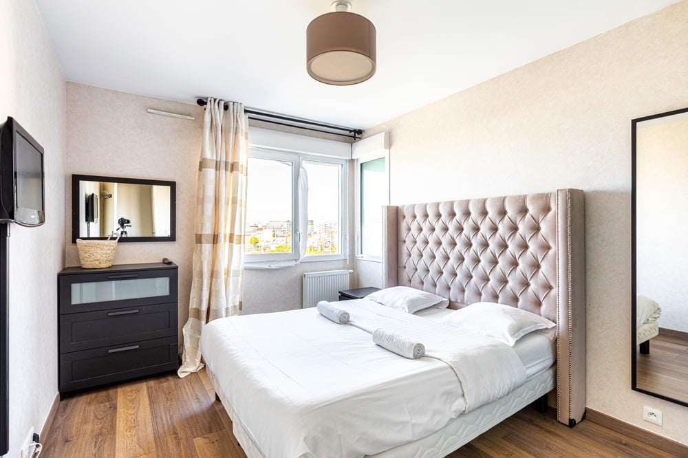 Welcome! The front door of this 72 m² apartment opens onto a bright and elegantly decorated space. The living area is equipped with a very comfortable sofa and a large television. The dining area features a large table that can seat up to four guests. It opens onto a balcony with an unobstructed view of Sacré-Coeur, Montmartre. The fully equipped kitchen includes all the appliances and utensils you need to prepare your meals: kettle, oven, microwave, Nespresso coffee machine, and more. The master bedroom has a queen-size bed (160x200 cm) carefully made with hotel-quality linens. The second bedroom has a pull-out bed (with two fold-out single beds) carefully made with hotel-quality linens. A closet allows you to store your belongings so you can feel at home. The bathroom is spacious. It has a sink, mirror, and shower. A washing machine is also available. The toilet is separate. You will have access to Wi-Fi during your stay. For your safety, a smoke detector is installed. The apartment is professionally cleaned between stays. All you have to do is enjoy yourself!