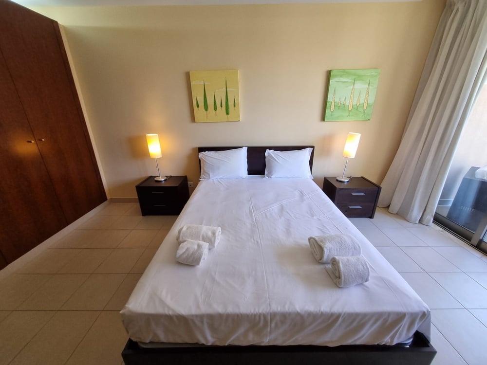 Enjoy an unforgettable holiday in this cozy 2-bedroom apartment located in the exclusive Herdade dos Salgados, a private and secure gated community in Albufeira. Perfect for families or groups of up to 4 people, the apartment offers a comfortable stay with access to a shared swimming pool, well-maintained gardens, and shared parking. The apartment features two bright bedrooms, a spacious living room with a sofa and TV, a fully equipped kitchen, and a balcony that's ideal for relaxing at the end of the day. Air conditioning and free Wi-Fi are included to ensure a comfortable stay. Apartment Highlights: - Accommodates up to 4 guests - Two bedrooms (one with a double bed, one with two single beds) - Shared swimming pool in the condominium - Fully equipped kitchen with dishwasher and washing machine - Balcony with outdoor dining area - Shared parking - Free Wi-Fi and air conditioning Prime Location: Herdade dos Salgados offers the perfect balance between peace and proximity to Albufeira's top attractions. By car, you’re just minutes away from: - Praia da Galé (Gale Beach) – 5 minutes - Albufeira Old Town – 15 minutes - Albufeira Marina – 12 minutes - Zoomarine Algarve – 10 minutes If you're looking for relaxation, nature, and easy access to the best of the Algarve, this apartment is the perfect choice. Book now and experience the charm of Albufeira in total comfort!