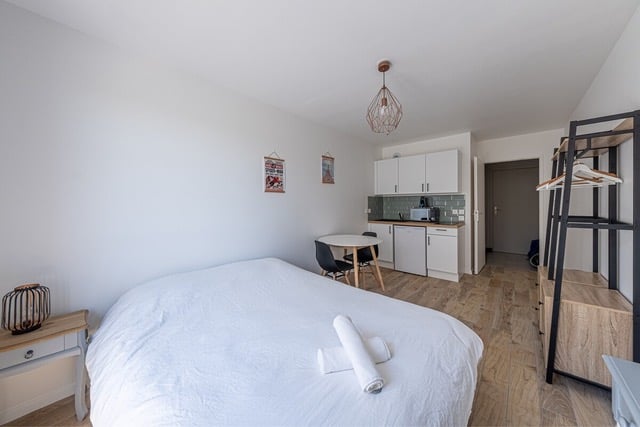 Très bien situé, le logement comprend : _ Un salon Séjour avec grand lit confort, télévision, table à manger _Cuisine Ouverte toute équipée (Micro-Onde,Grille Pain,Cafetière,Bouilloire) _Salle de bain avec douche et Wc _ Internet Haut Débit