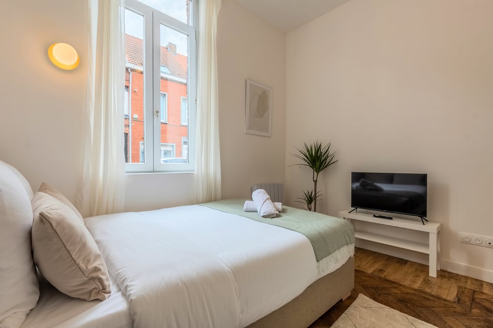 This apartment is located rue du Flocon, in Tourcoing. It is on the ground floor of a small building completely renovated in 2024. You will be less than ten minutes walk from the “Pont Hydraulique” tram stop which will take you to Lille in around thirty minutes. Free street parking. Ideal for visiting the region and/or for business trips!