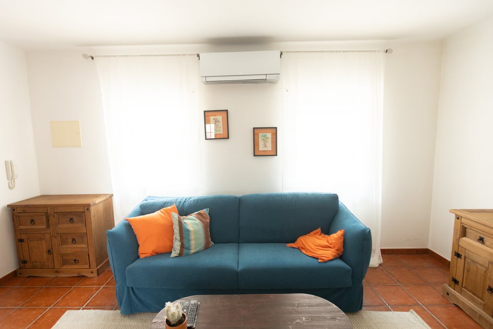 The living room is the center: the balcony starts getting sun from around 12 (depending on season), and has sun until the sunset. In the bathroom and kitchen you just know you are in Portugal. There are beautiful tiles across the whole room. The kitchen is well equipped with everything from a mocha coffee machine to a blender.
