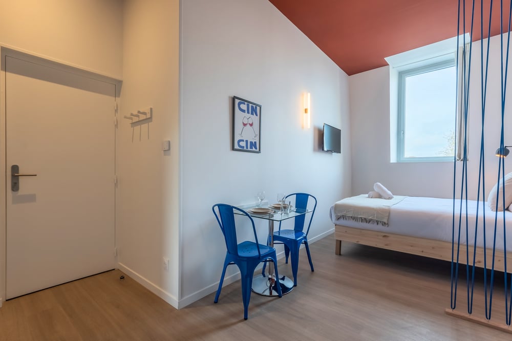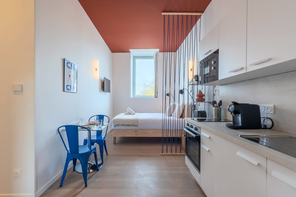 The apartment is composed as follows: - Living room with open kitchen - Bathroom with shower cubicle, sink and toilet - Double bed with quality bedding Please note that the accommodation does not have shutters, only blackout curtains. You will have access to washing machines (shared with the other occupants) in a room located in the cellar (level -1). The accommodation will be carefully prepared for your arrival: Professional cleaning service + laundry for household linen. All linen is provided: bed linen, bath towels, bath mats and tea towels. The kitchen is equipped with all utensils and dishes for lunch and dinner. Here is the entertainment at your disposal via TV: Molotov TV and Prime Video.