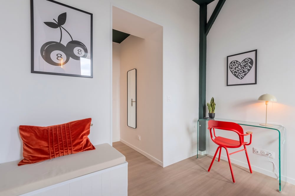 The apartment is composed as follows: - Living room with open kitchen - Bathroom with shower cubicle, sink and toilet - Double bed with quality bedding Please note that the accommodation does not have shutters, only blackout curtains. You will have access to washing machines (shared with the other occupants) in a room located in the cellar (level -1). The accommodation will be carefully prepared for your arrival: Professional cleaning service + laundry for household linen. All linen is provided: bed linen, bath towels, bath mats and tea towels. The kitchen is equipped with all utensils and dishes for lunch and dinner. Here is the entertainment at your disposal via TV: Molotov TV and Prime Video.