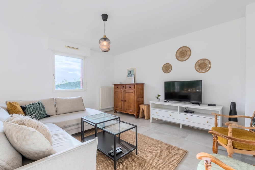 /!\ RESERVATIONS FOR PARTYING ARE STRICTLY PROHIBITED. ANY COMPLAINTS FROM NEIGHBOURS OR THE POLICE WILL RESULT IN THE FULL DEPOSIT BEING FORFEITED AND PERMANENT EXCLUSION FROM THE ACCOMMODATION/!\ BLINDS ARE CURRENTLY BROKEN they are going to be repaired soon The accommodation is composed as follows: Ground floor : - Large living room with open fitted kitchen, dining area and lounge area - separate WC - A large garden for sunny days Upstairs : - Two independent bathrooms, one with a bathtub and another with a shower cabin - 4 separate bedrooms with a double bed per room - separate WC The accommodation will be carefully prepared for your arrival: Professional cleaning service + laundry for linens. All linen is provided: bed linen, bath towels, bath mats and tea towels. The kitchen is equipped with all the utensils and dishes for lunch and dinner. Here is the entertainment available to you via TV: Molotov TV and Prime Video.