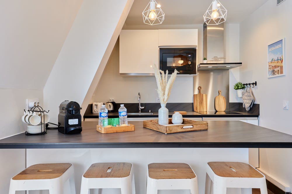 📍 LOCATION: Located in Cabourg, this accommodation offers an ideal setting to enjoy the charm of the Côte Fleurie. Just a short walk from the beach, you can breathe in the fresh sea air, stroll along the famous Marcel Proust promenade, or admire the elegant architecture of this iconic seaside resort. Cabourg captivates with its romantic atmosphere, grand casino, fine dining, and various water activities. Nestled in a pleasant neighborhood, this property provides quick access to shops and local attractions, including Deauville, Honfleur, and the D-Day landing beaches. A perfect destination for a stay combining relaxation, culture, and seaside pleasures. 🏠 ACCOMMODATION: ⋆ Welcoming living room, tastefully decorated ⋆ Functional, fully-equipped open-plan kitchen (Nespresso coffee machine) with standing area and stools. You'll also find a dry washing machine. ⋆ Bedroom with double bed (140 x 190 cm) and television ⋆ Fully-equipped bathroom with shower ⋆ Private, free and secure WiFi ⋆ Apartment located on the 3rd floor (with an elevator) 🛎️ SERVICES: ⋆ Self check-in and check-out ~ App to download ⋆ Traveler Support 7 days a week, until 10 pm on weekdays and 9 pm on weekends ⋆ Private, free, and secure Wifi ⋆ Bed linen and towels provided ⋆ Professional cleaning and laundry services ⋆ Welcoming items supplied in limited quantities (condiments, welcome tray, hygiene products) ⋆ Easy parking close to the accommodation: free parking on the street around the accommodation, controlled by disc (pedestrianised street at certain times). Free parking in adjacent streets. Public car parks less than 100 metres from the accommodation (free except during school holidays, weekends, public holidays and bank holidays).