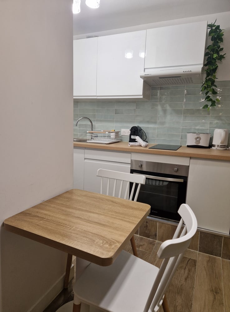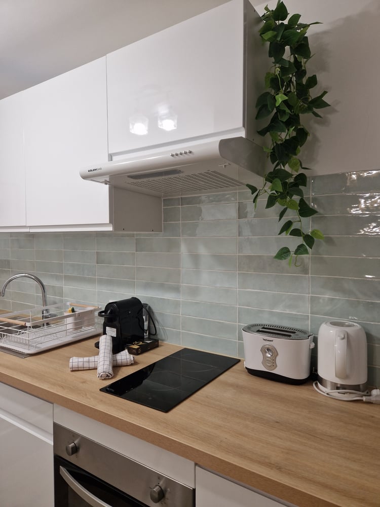 As soon as you enter our cosy nest, you'll see that we've mastered the art of optimizing space with taste! Opposite you, you'll find a table with two chairs to enjoy the delicious meals you've concocted in our fully-equipped kitchen just behind! Open the cupboards and drawers and you'll find everything you need. From the Nespresso coffee machine to the built-in oven, we've thought of everything! On your right, you'll find our TV corner with the sofa bed by the window. Our quality bedding will ensure your complete rest throughout your stay, rest assured. Finally, the two closed doors, one to the right of the front door, the other to the left, give you access to the bathroom with separate toilet. In the bathroom, the towel dryer faces our mirror and double-headed shower! All you have to do is settle in, and we're sure you'll appreciate the decor and functionality of this home! We look forward to welcoming you to OpenFlats!