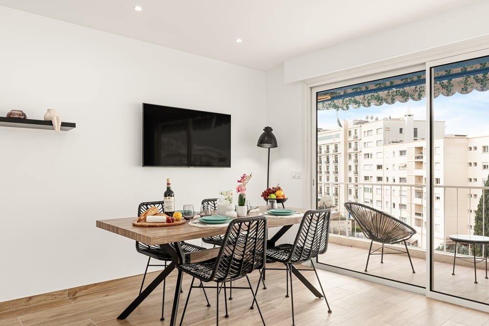 Welcome to the Suite Sérénade, a modern 42 m² jewel in the heart of Cannes, located on the 5th floor of a building with elevator. As soon as you enter, you'll be charmed by a bright and welcoming living room, with a double sofa bed for relaxing moments, a flat-screen TV and a dining table ideal for convivial meals. The open-plan kitchen is fully equipped with coffee capsules, sugar, tea and everything you need to prepare your meals like a chef. The master bedroom is soft and soothing, with a comfortable double bed. The modern bathroom is a haven of peace, equipped with a welcome kit including shower gel, shampoo and hairdryer. The toilet is integrated into the bathroom for added convenience. The major asset of the Suite Sérénade? A private 20 m² terrace, a veritable corner of paradise where you can enjoy your breakfast al fresco or a glass of rosé at sunset, all with a breathtaking view of the city. To enhance your stay, the apartment is equipped with all the necessary amenities: washing machine, dishwasher, iron and ironing board, fridge, freezer, hob, oven, microwave, toaster, kettle and Nespresso machine. Free Wi-Fi and a flat-screen TV complete the package for maximum comfort. Bed linen and towels are provided to ensure a carefree stay. The Suite Sérénade is much more than a place to stay, it's a unique experience, where every detail has been thought of to make your Cannes getaway an unforgettable memory, in a warm and relaxing atmosphere.