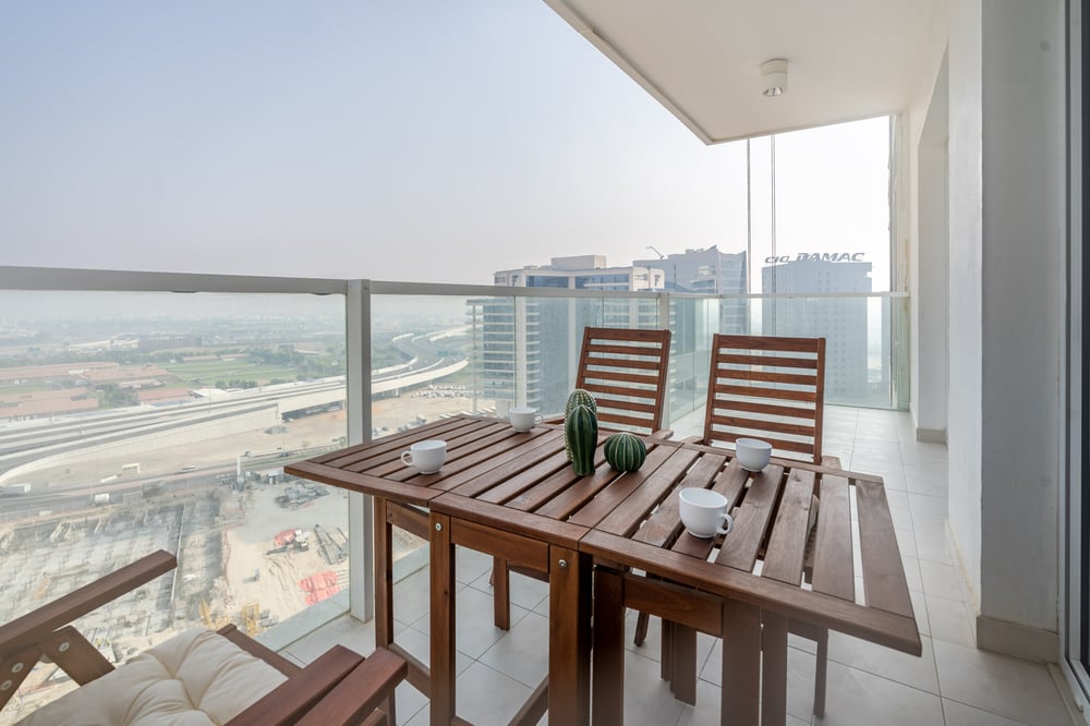 Business Bay é um dos centros residenciais e profissionais mais elegantes do Dubai, situado no meio das águas cintilantes do Canal do Dubai, a dois passos do bairro "it" por excelência do Dubai, a Baixa do Dubai. Uma das localizações mais sofisticadas do Dubai, com alguns restaurantes, hotéis e lojas premiados, a área tem uma linha espetacular de conteúdos de estilo de vida para alimentar o apetite da sua população jovem. Reverberando a energia da juventude, Business Bay tem um estilo de vida vibrante e de ritmo acelerado, com bares da moda, cafés movimentados e spas luxuosos. Há uma mercearia no rés do chão para sua conveniência.