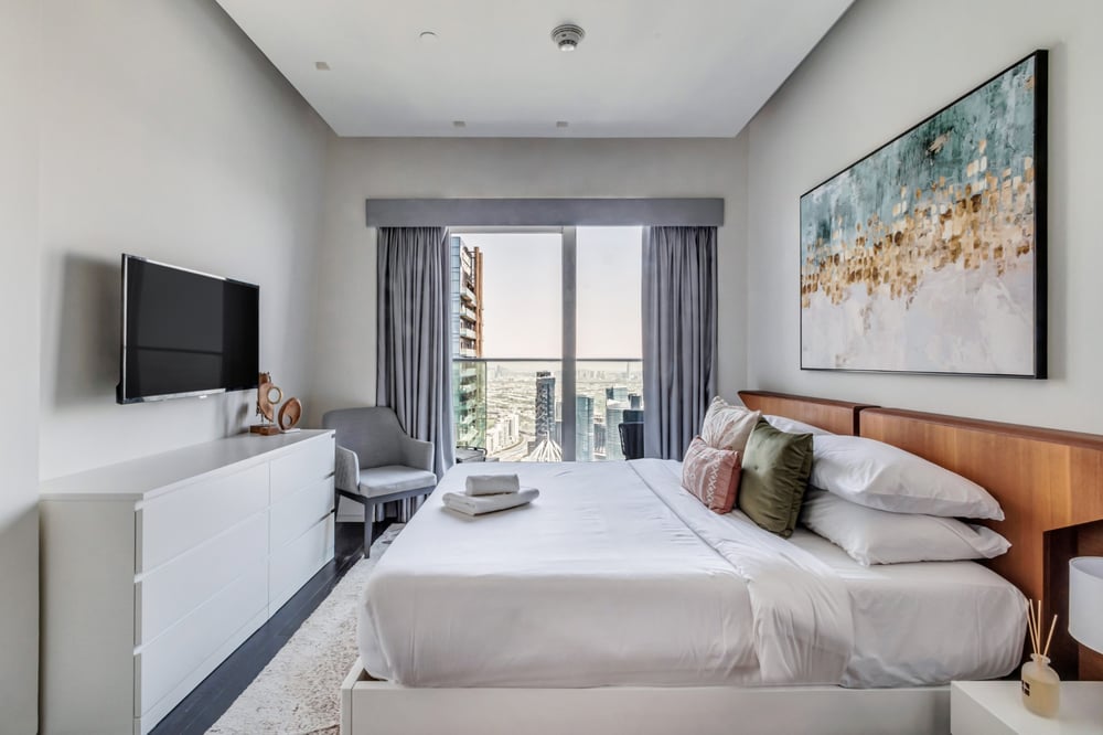 Welcome to my home! This lovely 89m2 apartment is located on the 65th floor, accessible by lift. Bright and tastefully decorated, this fantastic apartment is ideal for families exploring this beautiful city. It is designed with open living and dining areas. The living room features a comfortable sofa bed, a flat-screen smart TV with Netflix and a dining area where you can dine with loved ones. Step out onto your private balcony and take in breathtaking panoramic views of Dubai Marina. Perched high above the city, the outdoor retreat features stylish seating and a hanging chair perfect for unwinding and enjoying the unforgettable skyline and water views. The kitchen includes top-of-the-range appliances, essential cookware, and crockery to fulfil any culinary requirement. A washer is available for your laundry needs. The beautiful bedroom has a plush king-size bed, quality linens, and plenty of storage. It also boasts an en-suite bathroom for added privacy and convenience, plus direct access to the balcony, ideal for enjoying your morning coffee with a view. The 1.5 bathrooms have all the amenities you will need to freshen up. Clean towels and complimentary toiletries will also be supplied for your convenience. The apartment is always professionally cleaned for your comfort. Daily housekeeping services are available upon request for an additional fee. Please note, Dubai is a vibrant and ever-growing city, and with these developments come occasional construction in the apartment building or surrounding area. While this may bring some urban sounds or affect the views from the property, it is all part of the city’s dynamic growth. We truly appreciate your understanding and look forward to hosting you. Enjoy your stay!
