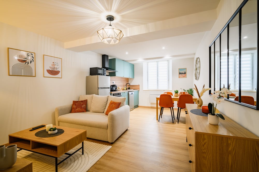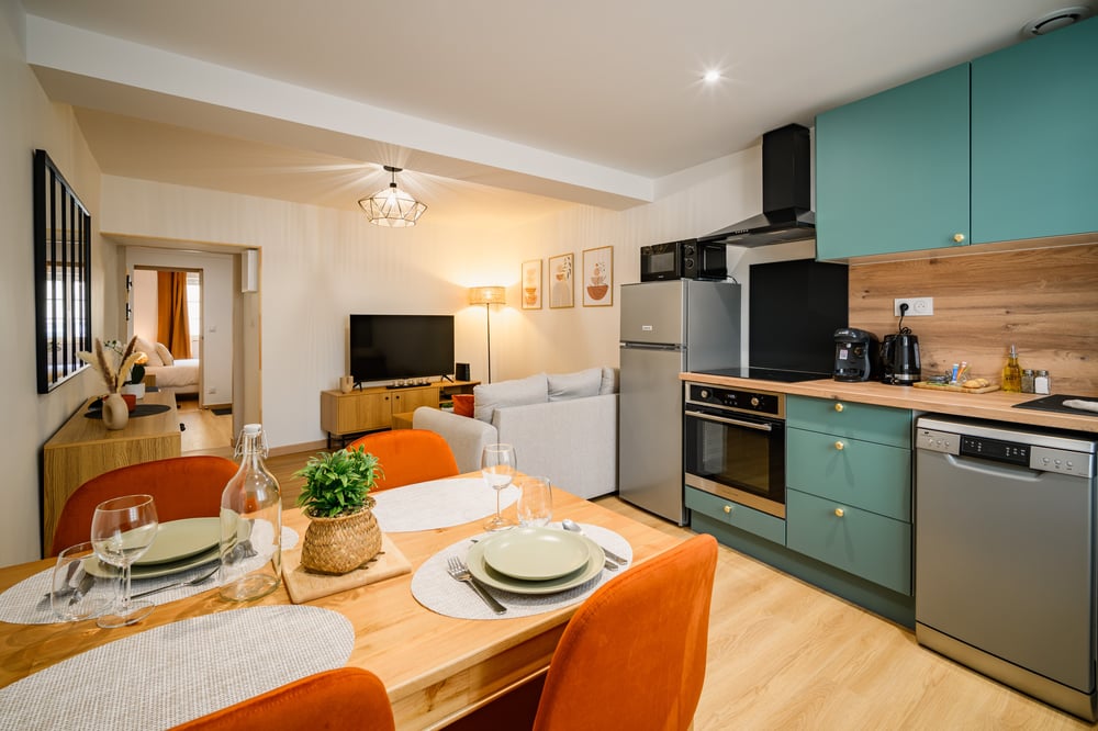 📍 THE LOCATION: This accommodation enjoys a prime location in the heart of Foix, a city rich in medieval heritage. Just a short walk away, you can explore the famous Château de Foix, a true symbol of local history, as well as the charming cobbled streets and half-timbered houses of the old town. This authentic and historic district offers a peaceful setting while being close to shops, restaurants, and local amenities. Nature lovers will appreciate the proximity of the Ariège Pyrenees, perfect for hiking and outdoor excursions. The Château de Lordat and other historical sites are also just a few kilometers away. This location is ideal for a stay that combines relaxation, cultural discoveries, and exploring breathtaking landscapes. 🏠 THE ACCOMMODATION: Apartment located on the 3rd floor without an elevator (stair access): • Cozy living area, tastefully decorated, with a smart TV • Functional, fully equipped kitchen (coffee maker, etc.) with dining space • Comfortable double bedroom (Queen-size bed: 160 x 200 cm) • Bathroom with shower ~ Separate toilet 🛎️ THE SERVICES: • Self check-in & check-out • Traveler support available 7 days a week, until 10 PM on weekdays and 9 PM on weekends • Private, free, and secure WiFi • Bed linen and towels provided • Professional cleaning and laundry services • Welcome amenities provided in limited quantities (condiments, welcome tray, hygiene products) • Easy parking nearby: Paid street parking or Gare parking lot, a 5-minute walk away