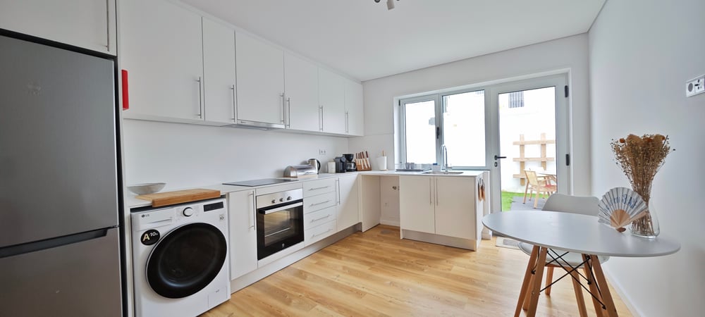 Desfrute de noites tranquilas em dois quartos amplos, decorados com bom gosto, com roupa de cama de qualidade e bastante espaço de arrumação. Relaxe numa sala acolhedora e luminosa, perfeita para descansar após um dia de passeio. Ideal para ler, conversar ou saborear um copo de vinho. Prepare as suas refeições numa cozinha moderna com tudo o que precisa: fogão, forno, máquina de café, chaleira, máquina de lavar roupa e mais. Aproveite o terraço exterior — perfeito para tomar o pequeno-almoço ao ar livre, jantar ao fim da tarde ou simplesmente desfrutar da atmosfera açoriana.