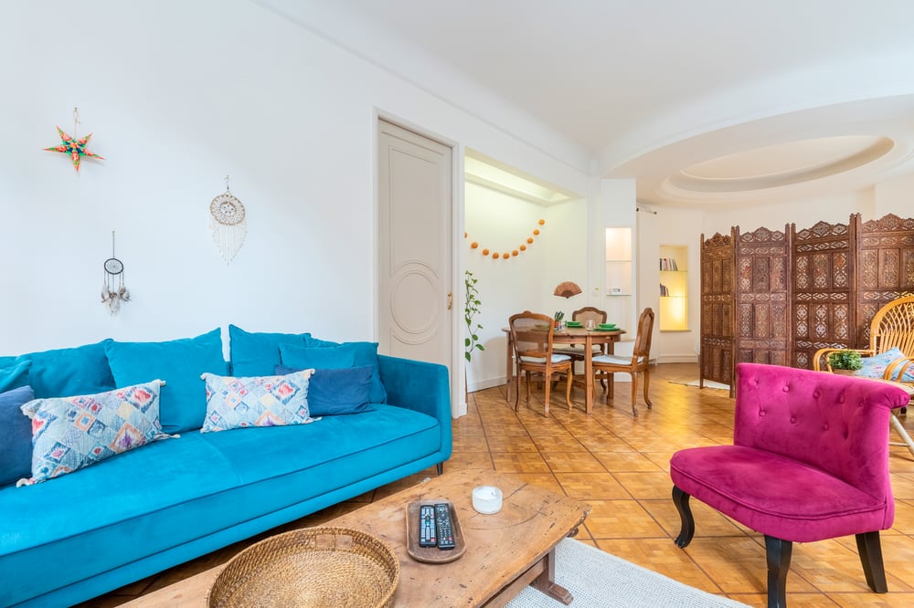 The apartment is located on the second floor of a building without an elevator. The staircase is a little narrow, so we recommend you bring small luggage! As you enter the apartment, you'll find a pleasant, bright living room with lounge and dining area. A well-defined bedroom area with double bed (140x200), a separate fully-equipped kitchen and, in the next room, a bathroom with spacious shower and toilet. The accommodation will be carefully prepared for your arrival: Professional cleaning service + laundry service for household linen. All linen is provided: bed linen, bath towels, bath mats and tea towels. The kitchen is equipped with all utensils and dishes for breakfast and dinner. Entertainment available via TV: Molotov TV and Prime Video. We like this apartment for its location and the charm of the surroundings!