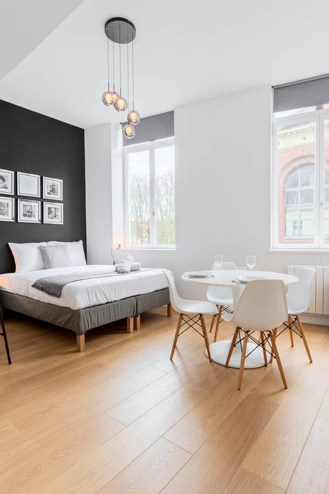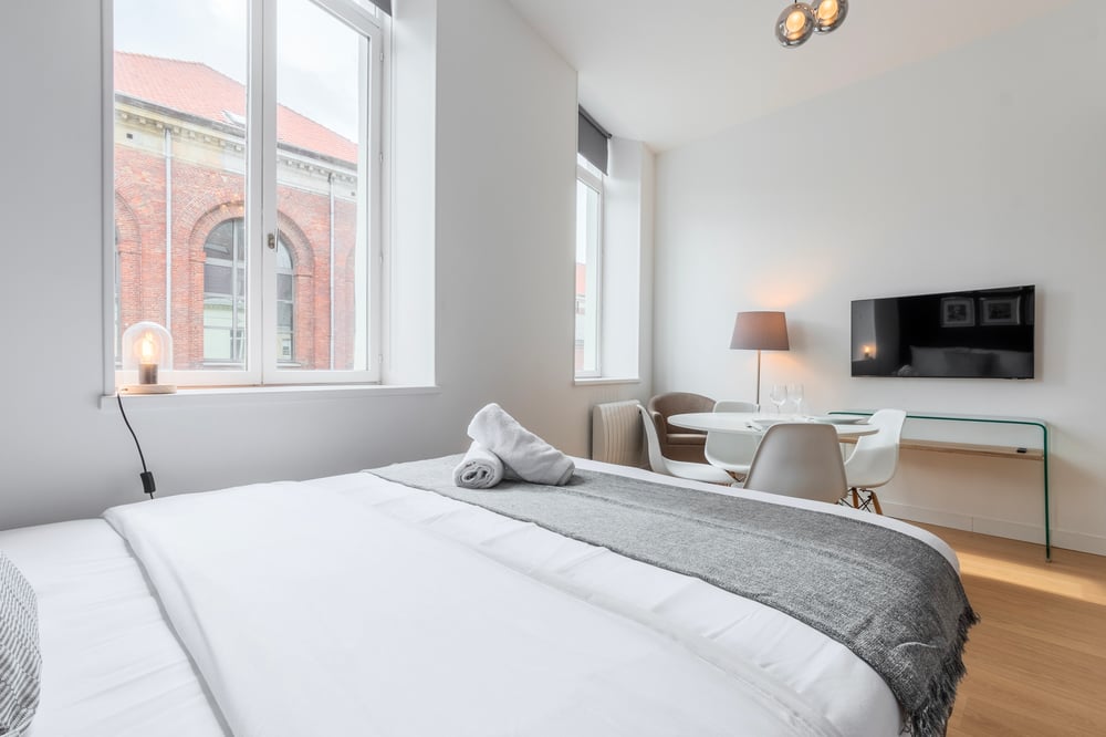 The flat is located on the second floor of a secure building in Vieux Lille and comprises a bright living room with a double bed (140x200), a fitted kitchen with dining area and a bathroom with shower. Please note that this flat is located above a bar/nightclub, which can lead to noise pollution from Wednesday to Saturday evenings. The area is quite lively, so for those who sleep lightly, we advise you to bring your earplugs! You'll love this flat for its location in the heart of Old Lille and its comfort! The flat will be carefully prepared for your arrival: Professional cleaning service + laundry service for household linen. All linen is provided: bed linen, bath towels, bath mats and tea towels. The kitchen is equipped with all utensils and dishes for lunch and dinner. Entertainment available via TV: Molotov TV, Prime Video !