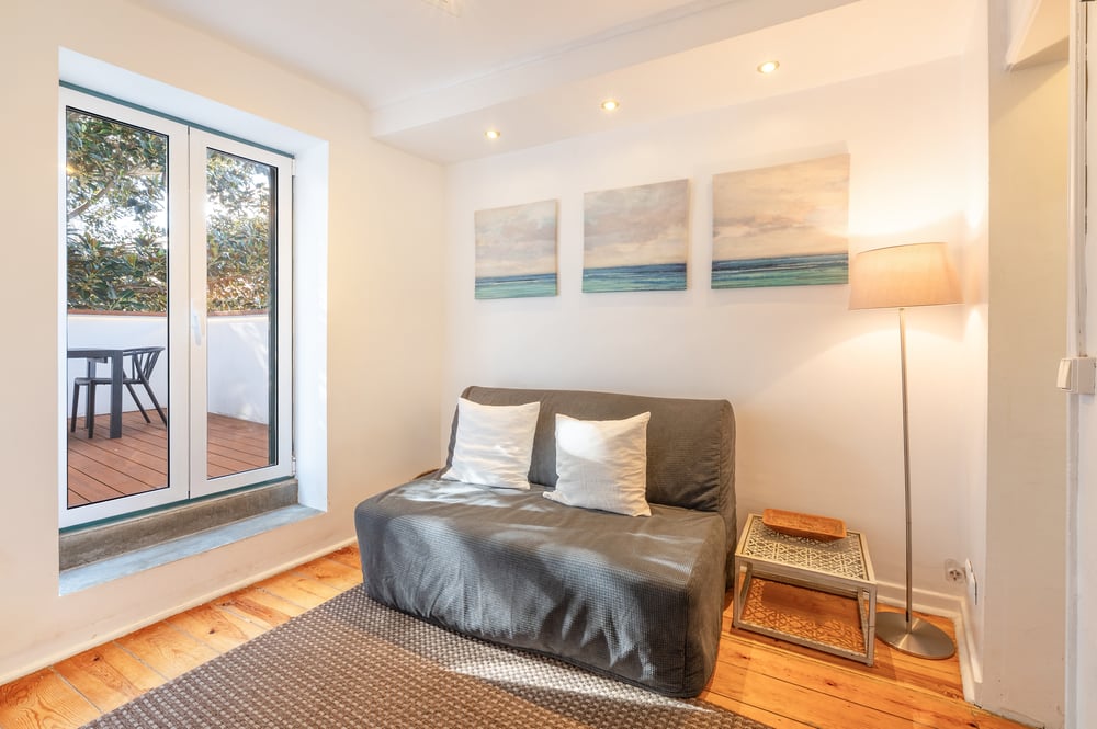 Ótimo bairro, perto de Alfama. Centro da cidade a curta distância. Óptima varanda.