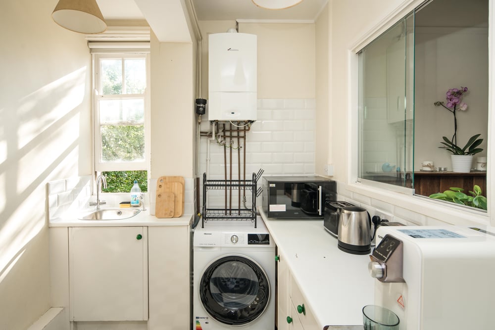 Set in the heart of Shepherd’s Bush, this light-filled West London flat is a comfortable and stylish base for exploring the city while enjoying a relaxed residential setting. It has a calm, homely feel that makes it easy to settle in, with period details, soft neutral tones, large windows and an original (decorative) fireplace that anchors the living room beautifully. The flat comfortably accommodates up to four guests and is located on the first floor of a traditional building, with one spacious double bedroom and a double sofa bed in the living room. The bathroom is bright and well-appointed, with a shower over bath. The kitchen is compact yet well equipped, with a coffee machine, washing machine and everything needed to cook during your stay. Throughout, the styling is clean and understated, with light furnishings, white finishes, plants and soft textiles creating a space that feels both fresh and lived-in. Located close to a wide range of shops, cafés and restaurants, the property also benefits from excellent transport links, making it easy to explore central London and beyond.