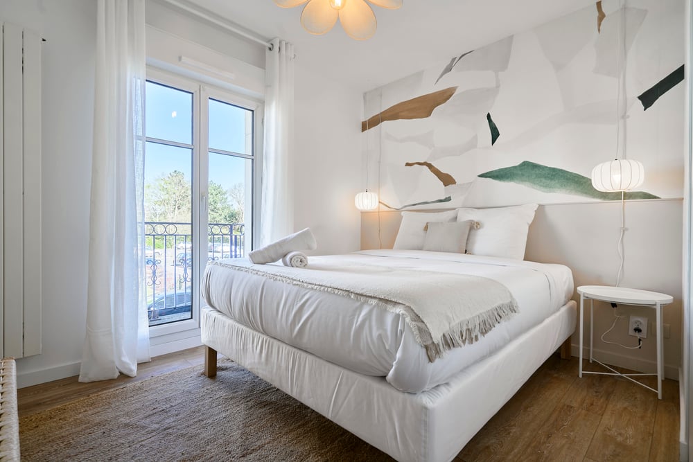 The apartment is composed as follows: - Living room with dining area, lounge area, and two balconies - Separate equipped kitchen - One bedroom with double bed and balcony (the window has a roller shutter) - Bathroom with bathtub and sink - Separate toilet The accommodation will be carefully prepared for your arrival: Professional housekeeping service + laundry service for linens. All linens are provided: bed linen, bath towels, bath mats, and tea towels. The kitchen is equipped with all utensils and dishes for lunch and dinner. The following entertainment options are available via TV: Molotov TV and Prime Video.
