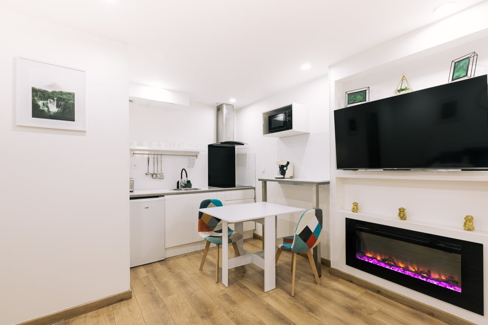 Esta é uma propriedade de auto-verificação e ser-lhe-á pedido que verifique a sua identidade antes de poder entrar no apartamento. O check-in pode ser feito a partir das 15:00, enquanto se aguarda disponibilidade e confirmação. Se necessitar de limpeza/limpeza adicional durante a sua estadia por uma taxa, por favor contacte-nos. Foram instaladas câmaras de CCTV nas áreas comuns. Uma na entrada do edifício e as outras em cada andar do corredor fora dos estúdios. Existe uma política de tolerância zero para fumar na propriedade. Se a nossa equipa descobrir alguma prova de que esta regra foi violada (por exemplo, cheiro a fumo, cinzas, etc.) reservamo-nos totalmente o direito de cobrar uma taxa de 300 euros por fumar, no mínimo. O aquecedor está abaixo da televisão; é um aquecedor eléctrico, estilo chaminé muito moderno, e com um controlo remoto para o ligar/desligar e gerir a temperatura. Se a janela permanecer aberta, o aquecedor fecha-se automaticamente.