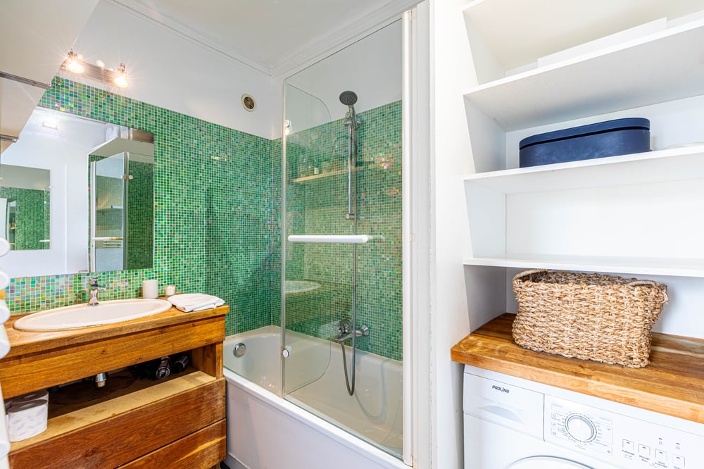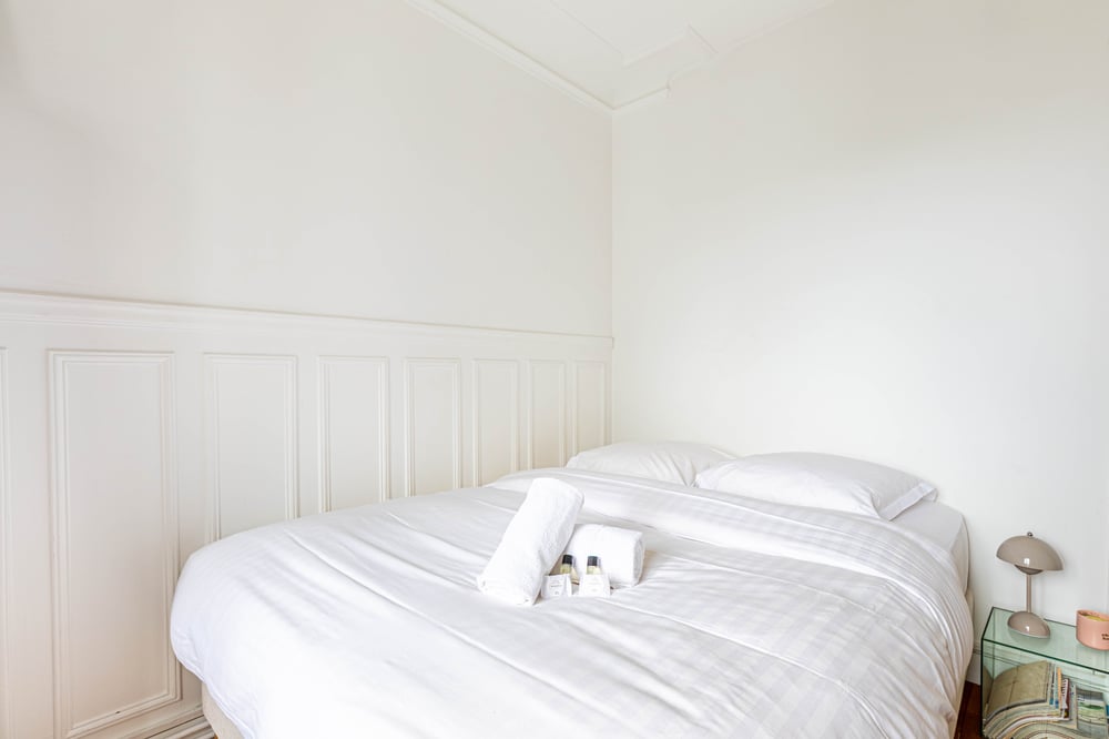 Welcome to my apartment! Situated on the 4th floor without a lift, this modern and tastefully decorated 50m² apartment has everything you need for a comfortable stay! Please note that the apartment is not suitable for people with reduced mobility. This apartment has an open floor plan. The living room features a large sofa bed, a comfortable couch where you can relax, and a dining table for four. The kitchen is fully equipped with essential cookware and cutleries that you'll need to cook delicious meals, such as a cooking plate, an oven, a toaster, a kettle, a microwave, a Nespresso coffee machine and dishwasher. The apartment also has a washer and ironing equipment for your laundry needs. The bedroom has a queen bed (160x200) with complimentary hotel-quality linens for maximum comfort. A fan is also available. The bathroom contains all the necessary amenities, including a hairdryer, towels, a towel dryer and complimentary toiletries. You will have access to Wi-Fi throughout your stay. For your safety, a smoke detector is installed. The apartment is always professionally cleaned for your comfort. Enjoy your stay!