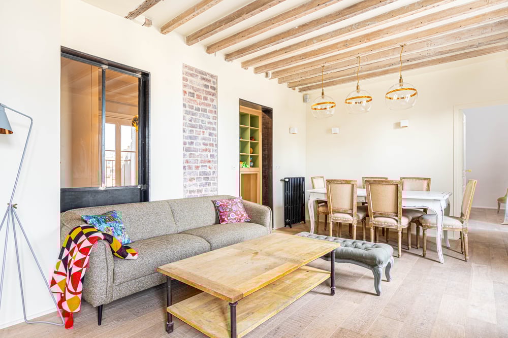 Bem-vindo ao meu apartamento! Localizado no 6º andar com elevador (que só vai até ao 5º andar), este apartamento moderno e decorado com bom gosto, com 102 m², está perto de muitas das atracções obrigatórias de Paris, incluindo a Torre Eiffel! Por favor, note que é necessário subir um piso para aceder ao apartamento. Concebida em plano aberto, a sala de estar dispõe de sofás confortáveis, uma televisão inteligente com várias opções de transmissão para os seus programas favoritos e uma mesa de jantar para seis pessoas. A cozinha está totalmente equipada com os utensílios de cozinha e talheres essenciais para preparar refeições deliciosas, incluindo um fogão, um forno e um micro-ondas. O apartamento também dispõe de uma máquina de lavar roupa para as suas necessidades de lavandaria. O quarto principal tem uma cama king-size, enquanto os outros dois quartos têm uma cama queen-size. Todas as camas estão decoradas com roupa de cama de qualidade de hotel para o máximo conforto. A casa de banho tem todas as comodidades necessárias, incluindo toalhas e produtos de higiene pessoal gratuitos. O apartamento é sempre limpo profissionalmente para seu conforto. Por favor, note que esta propriedade não é acessível a pessoas com mobilidade reduzida. Desfrute da sua estadia!