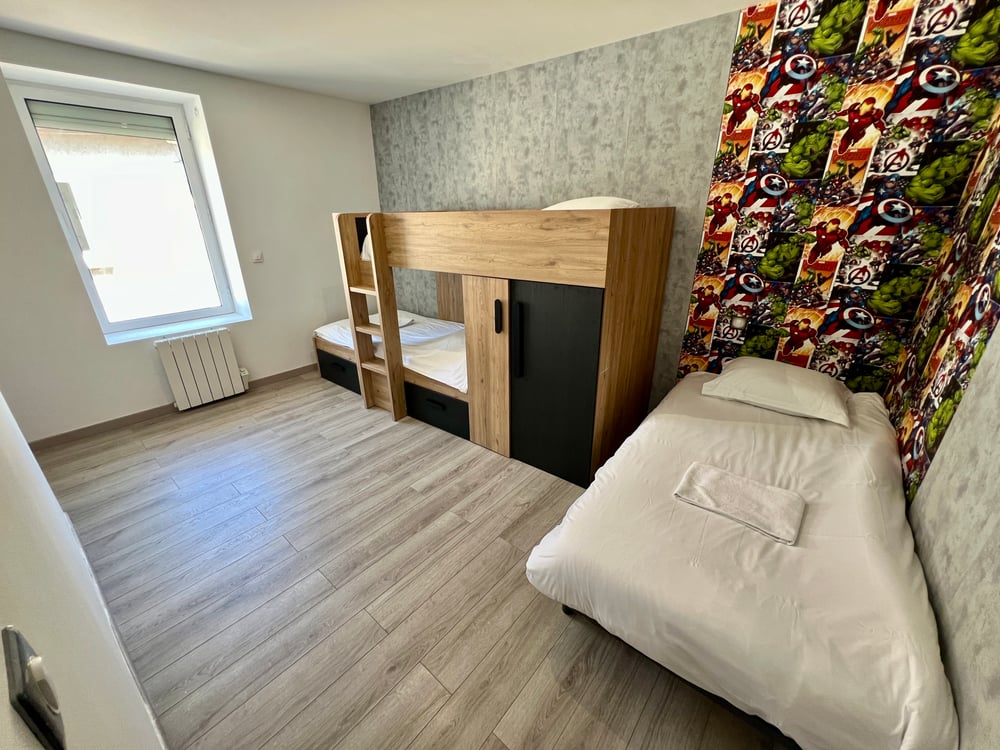 Spacious and functional 2-bedroom apartment in Poitiers, ideal for families or colleagues. Features include 5 sleeping spaces, a fully equipped kitchen, comfortable living area, Wi-Fi, and a washing machine. Perfect for both short and extended stays.