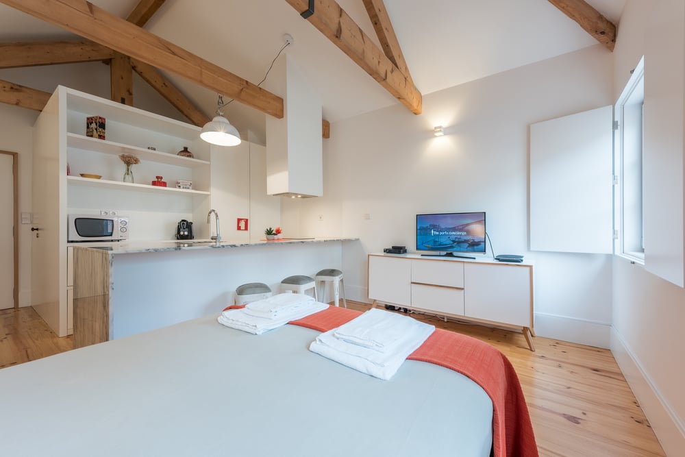 Bem-vindo ao meu estúdio! Modernamente mobilado e decorado com bom gosto, este lindo estúdio (30 m2) fica perto de várias atracções de topo no Porto, como os Jardins do Palácio de Cristal e a Livraria Lello! A estação de metro fica apenas a alguns minutos a pé do apartamento, permitindo aos hóspedes explorar a cidade com facilidade. Este estúdio foi concebido com áreas de estar, de jantar e de cozinha abertas. Relaxe na sala de estar, que possui uma confortável cama de casal completa com roupa de cama de qualidade de hotel para o máximo conforto. A cozinha está totalmente equipada com os utensílios de cozinha e talheres essenciais para cozinhar. A área de jantar pode acomodar confortavelmente três pessoas. O apartamento também dispõe de equipamento de engomadoria, caso necessite. A casa de banho tem tudo o que é necessário, como champô e secador de cabelo. As toalhas também serão fornecidas para sua conveniência. A casa é sempre limpa profissionalmente para seu conforto. Desfrute da sua estadia! Por favor, note que não há elevador neste edifício.