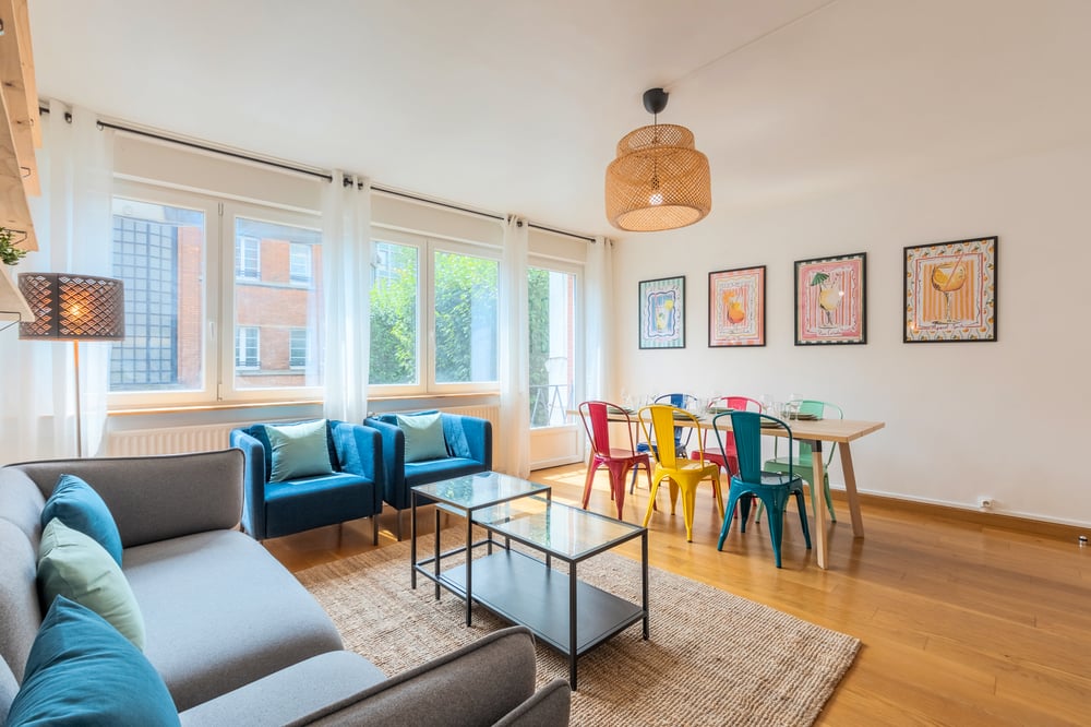 /!\ RESERVATIONS FOR PARTY PURPOSES ARE STRICTLY PROHIBITED. ANY COMPLAINTS FROM NEIGHBORS OR THE POLICE WILL RESULT IN A FULL DEPOSIT WITHDRAWAL /!\ The apartment is composed as follows: - Living room with dining room & lounge area - Equipped kitchen at the back - 3 bedrooms with double bed - Bathroom with shower, sink and washing machine - separate WC The accommodation will be carefully prepared for your arrival: Professional cleaning service + laundry for linens. All linen is provided: bed linen, bath towels, bath mats and tea towels. The kitchen is equipped with all the utensils and dishes for lunch and dinner. Here is the entertainment available to you via TV: Molotov TV and Prime Video.