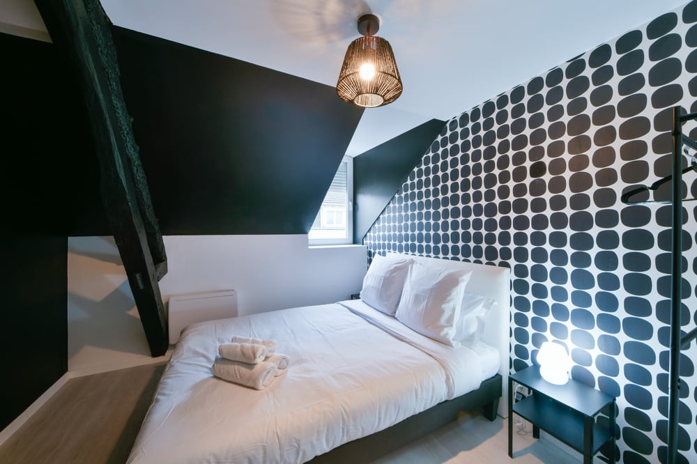 Dichroma • Charming 67 m² house with a garden in the heart of Vierzon, fully renovated for your comfort. It features 3 bedrooms, a bathroom, a welcoming living room, and a private garden. Its original black-and-white décor creates a unique atmosphere, perfect for a stay with family, friends, or for business trips.